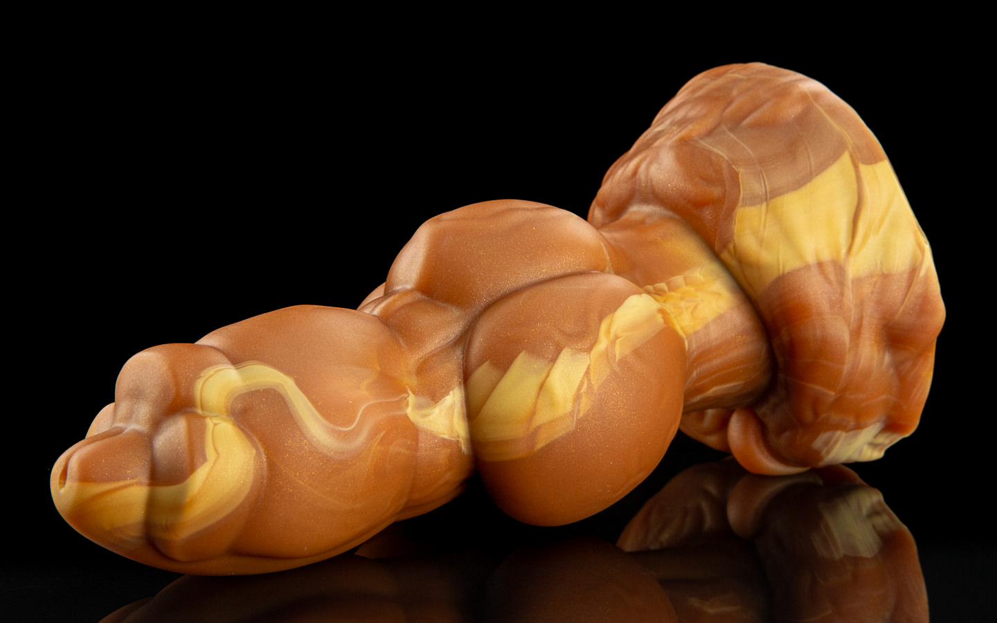 He's got a HUGE knot, one of our biggest. His dick has a great shape, and his fat pierced sheath ties it all together.