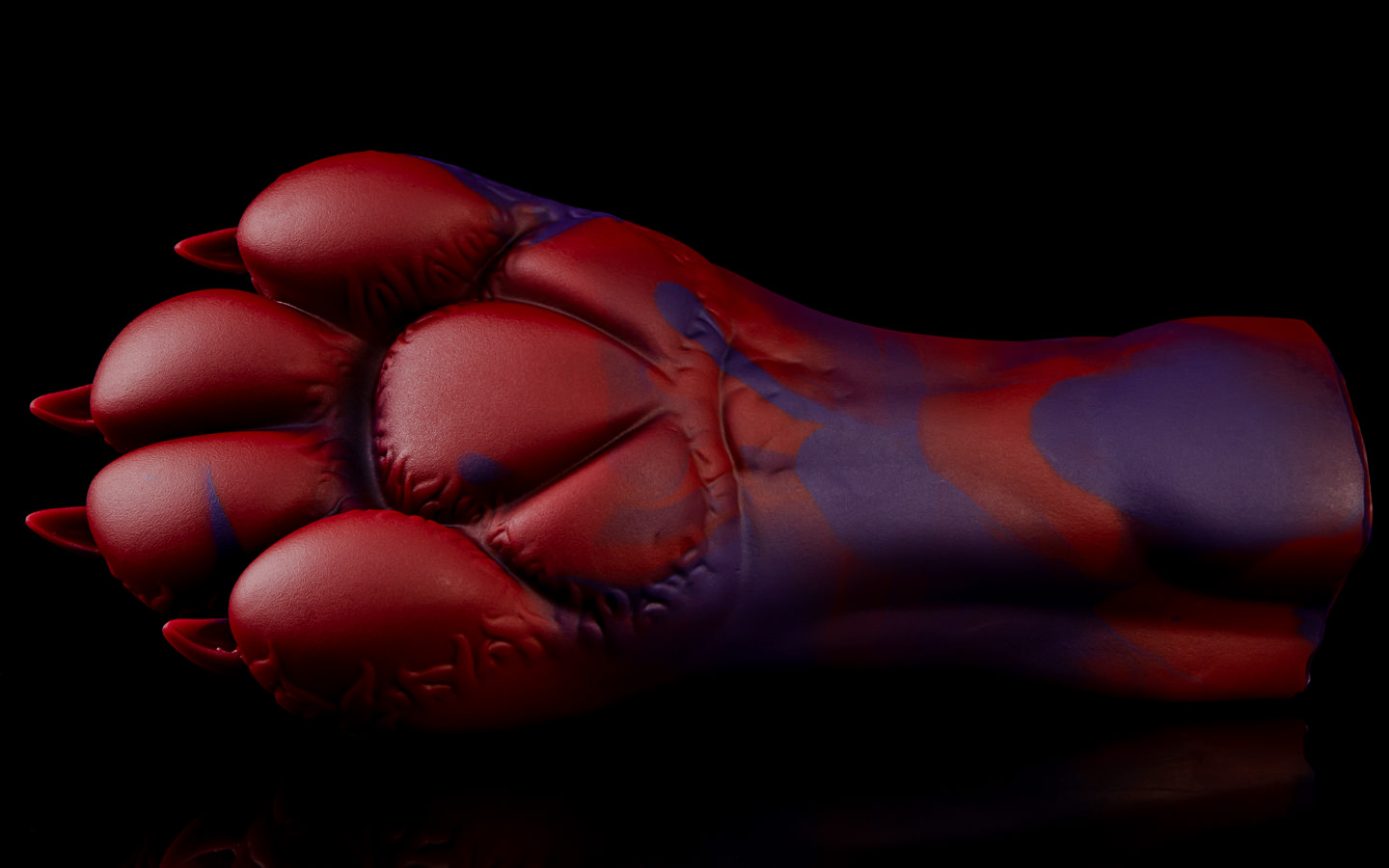 Gideon's signature comes in a coffee and chocolate swirl, with separately-cast pawpads made from an even softer silicone than the main paw - giving them a lovely 'squish'. The Silverfox style is produced in the same way but in different colours. Give those toebeans a pinch, they're super cushiony!