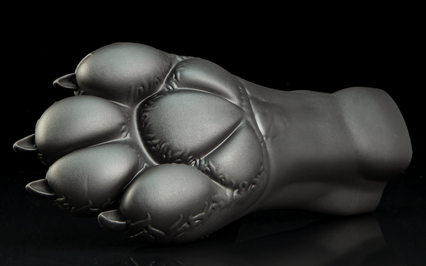 Gideon's signature comes in a coffee and chocolate swirl, with separately-cast pawpads made from an even softer silicone than the main paw - giving them a lovely 'squish'. The Silverfox style is produced in the same way but in different colours. Give those toebeans a pinch, they're super cushiony!