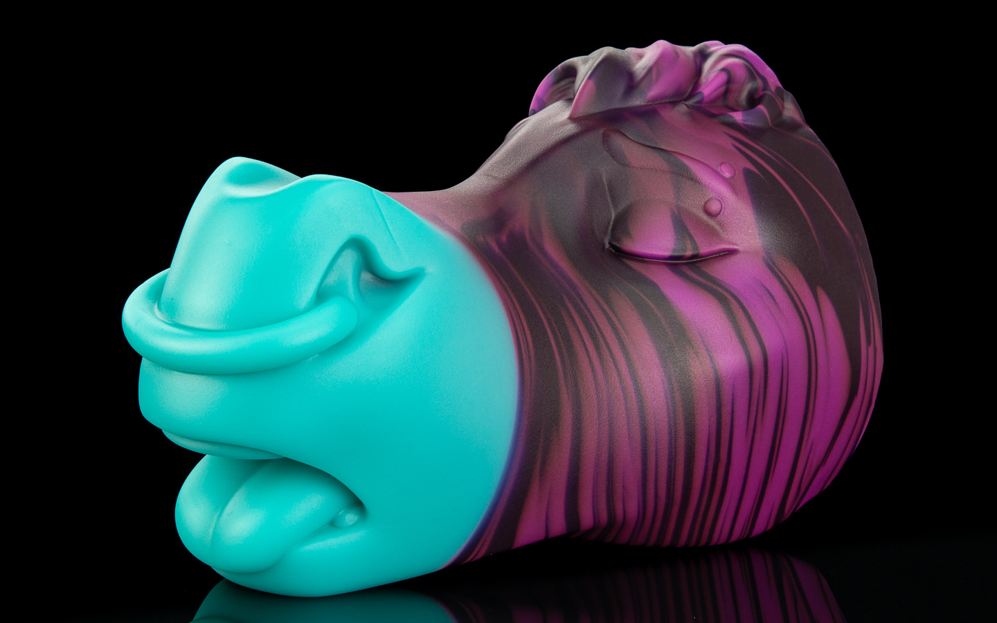 A cute unicorn colouration; His face is swirled between a sparkling white, purple and sky blue before smoothly transitioning to a pink muzzle.