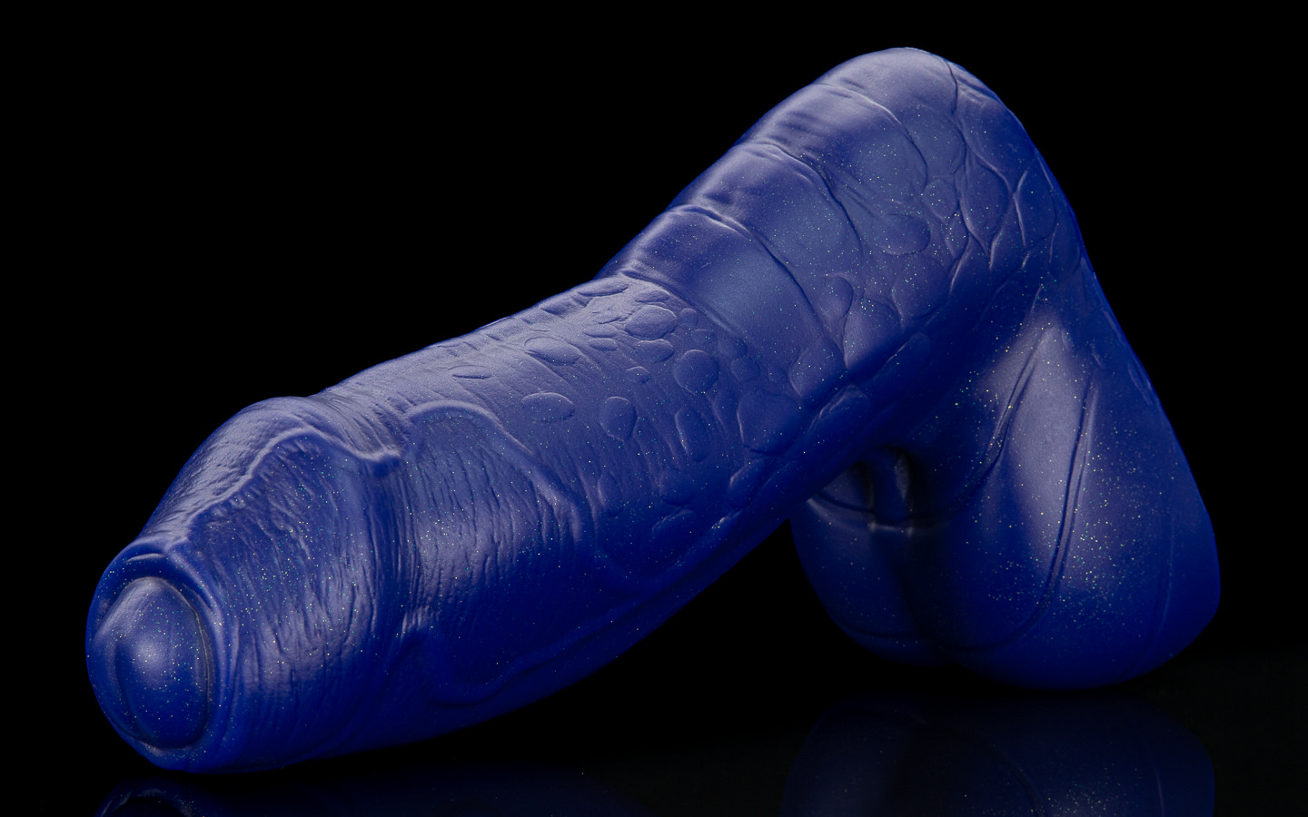 The wrinkles then transition to a scaled texture further down, making him more interesting to explore when hilted; his plated balls make a good place to sit once you’re at the bottom!
