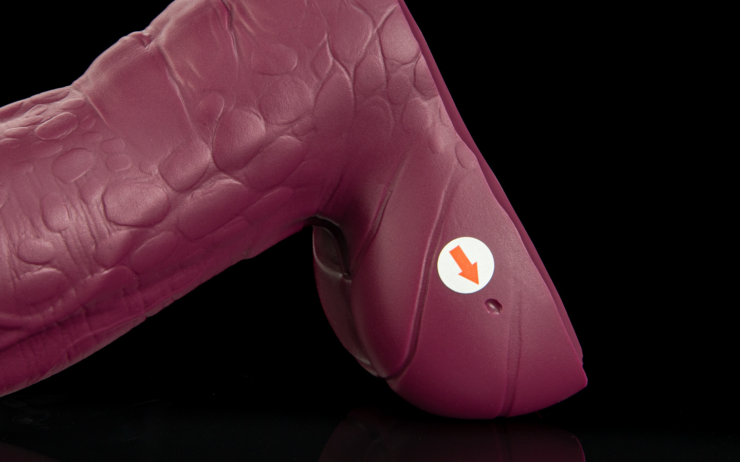 The wrinkles then transition to a scaled texture further down, making him more interesting to explore when hilted; his plated balls make a good place to sit once you’re at the bottom!