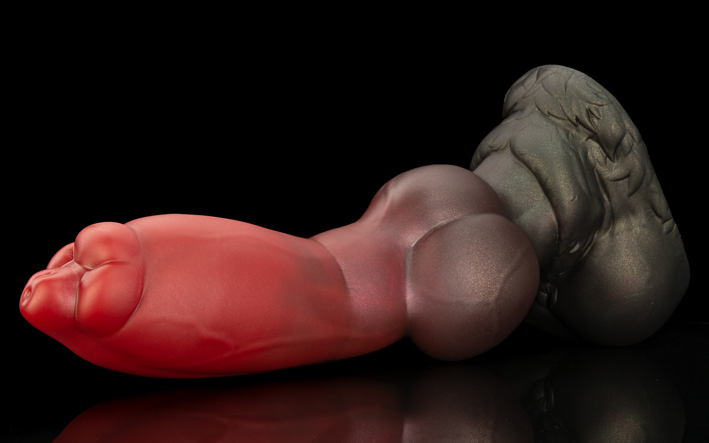 This grey wolf is our refinement of a classic canine shape – no frills, just the best-designed knotted dick.