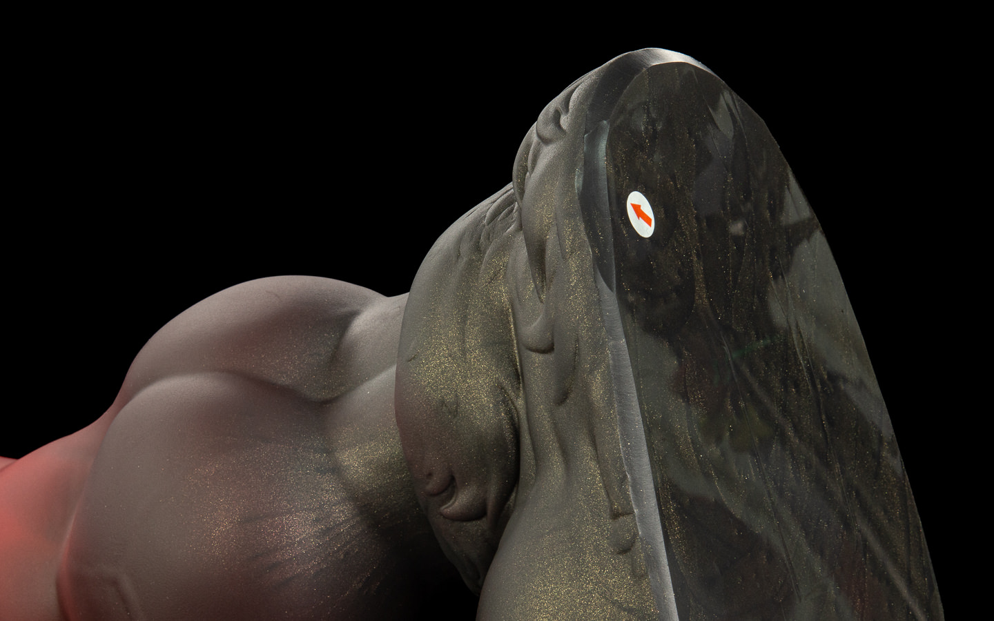His signature toy fades from a vivid, gently sparkling crimson to a gold-mica'd black base. It looks stunning in person.