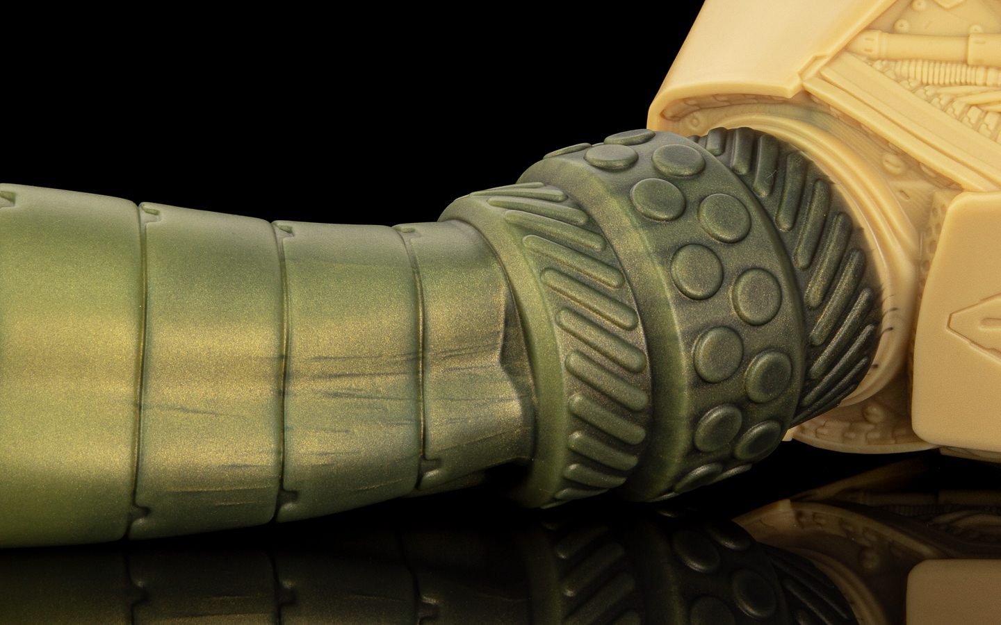 Milo worked methodically; removed the blanking plate from Scout’s ventral port, routed the purpose-built cables - power, data, hydraulic lines. As each connection seated, the shaft responded in stages, first a cyan glow traveling up the length, then internal coils warming it against Milo’s gloved paws. Then, a distinct flex and pulse when the last hydraulic quick-connect snapped home. It was kind of uncanny - despite looking obviously synthetic, it had an organic feel to it. The lynx felt an unexpected heat bloom between his legs.