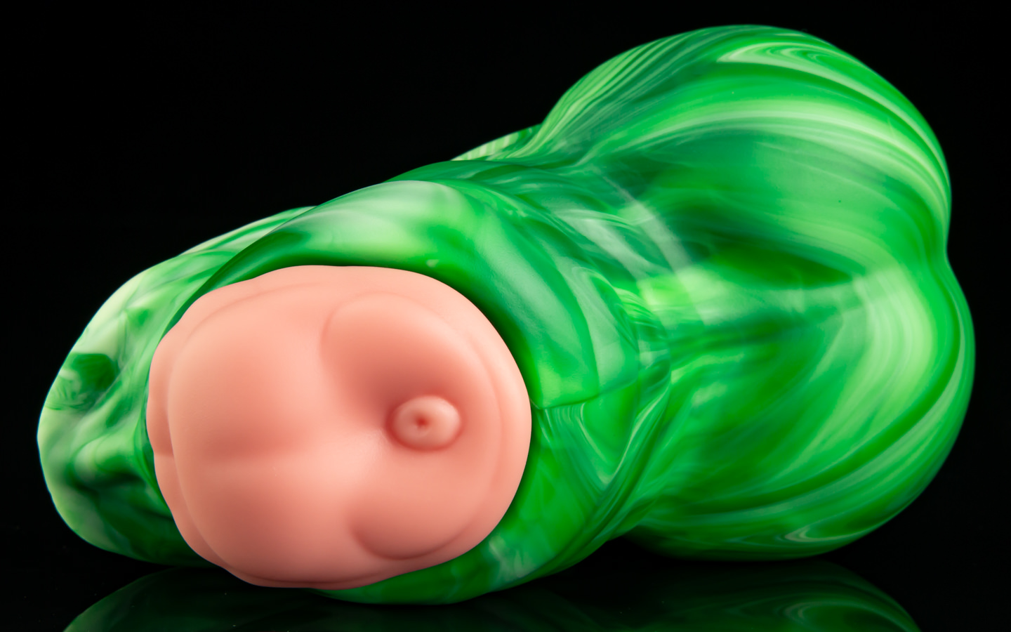A: Both the core and the sheath itself are made from the same silicone as our penetrables – very soft, very pliable. Silicone can tear no matter what shape it’s in, so be careful with the more delicate parts of the sheath, especially around its opening! Don’t bite or overstretch it, and keep sharp/pointed objects away.